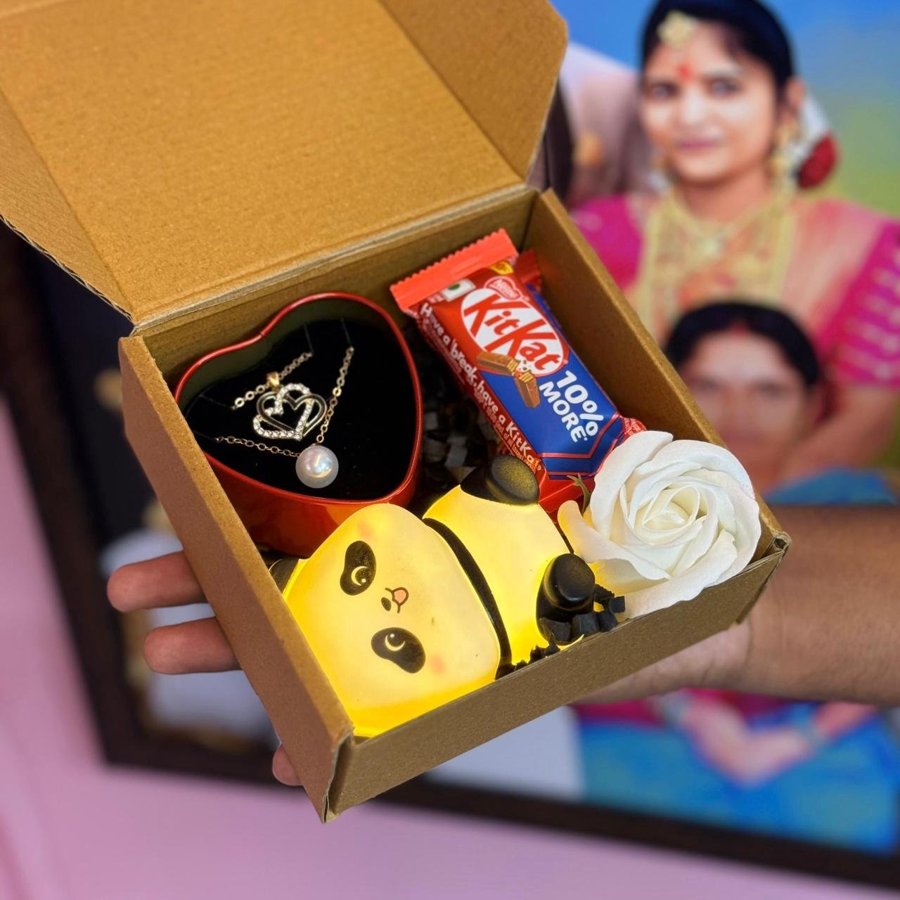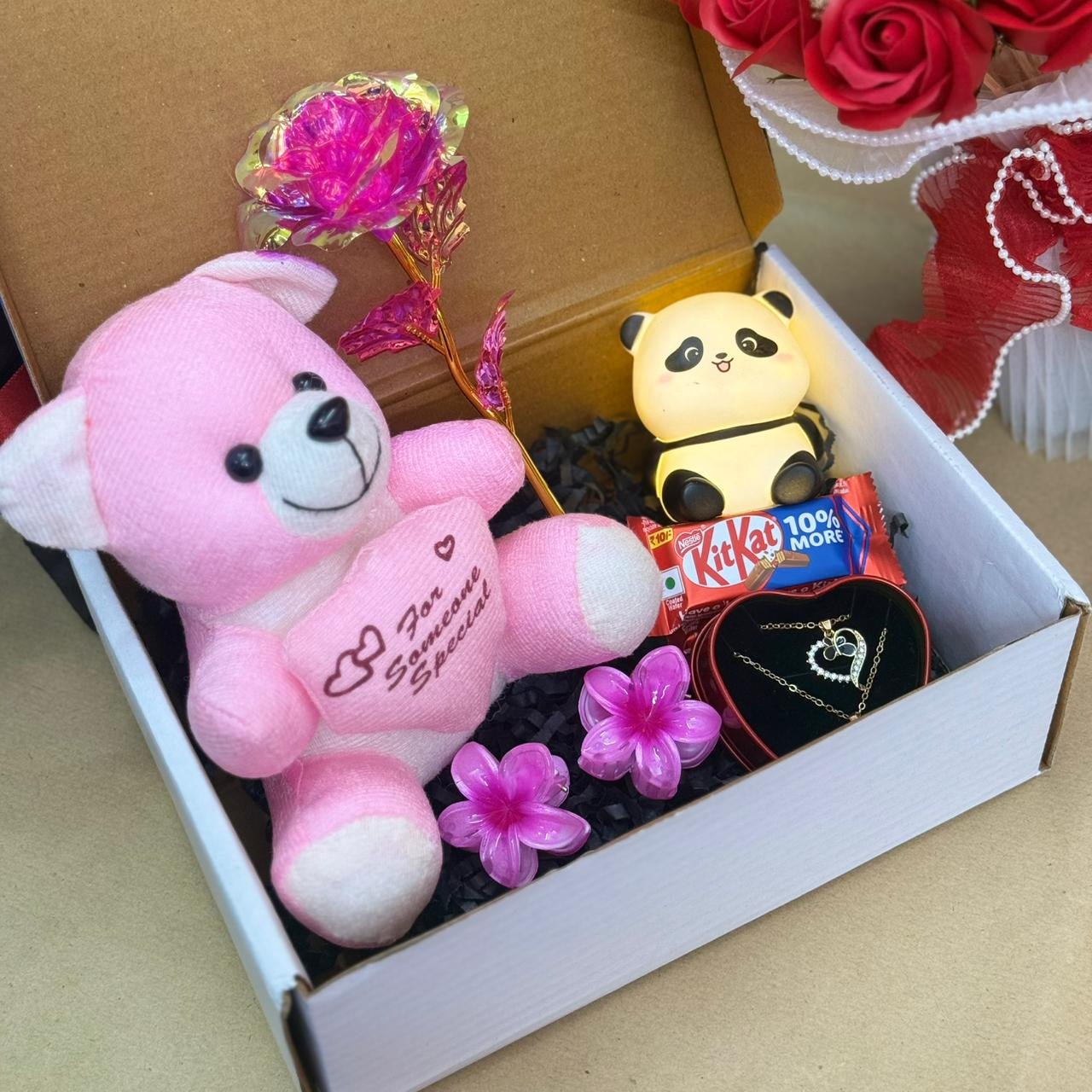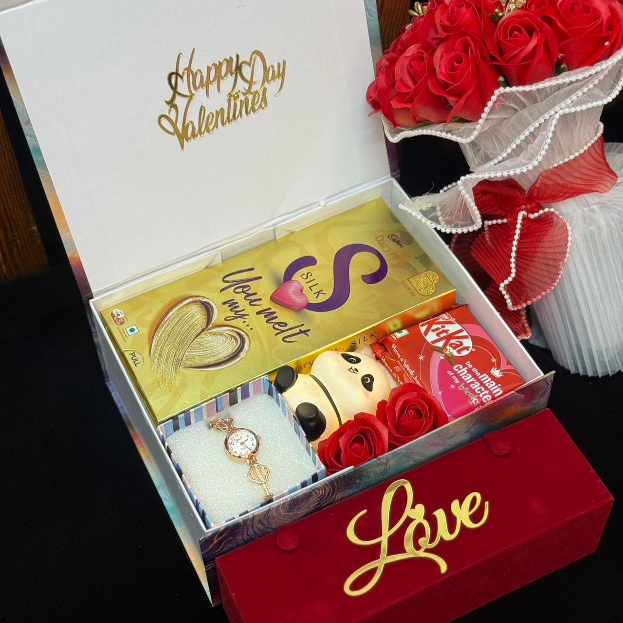 with permium Earing Box if any details mention In Order Note 💝Valentines Dairymilk Hearts Mini panda or Rabit or Chinchan Chocolate Rose Perimum box 10-8 Valentine’s Day 4D cutting